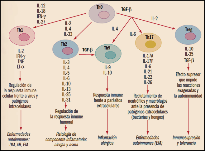 Las células presentadoras de antígenos (antigen presenting cells, APC) son un elemento clave del sistema inmunitario, implicado en la captación, procesamiento y presentación de moléculas de carácter antigénico sobre la membrana. Estas células permiten dar a conocer dichos antígenos al sistema inmunitario, especialmente por los linfocitos T, iniciando la cadena de respuestas antigénicas específicas. En concreto, la presentación del antígeno y la formación de la sinapsis inmunológica en las APC provoca la secreción de diversas citocinas e induce la diferenciación de los linfocitos T en células efectoras específicas (linfocitos T facilitadores o helper, Th), particularmente las Th1, Th2 y Th17, cada una de ellas secretando sus propias citocinas.