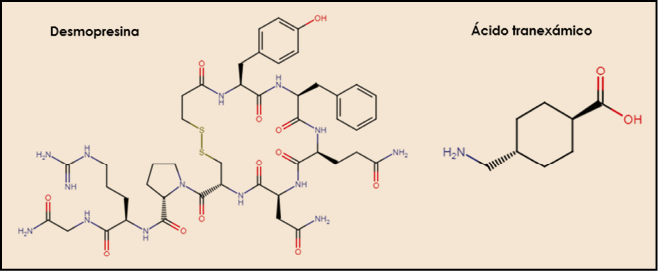 Figura 5. Estructuras químicas de la desmopresina y el ácido tranexámico.