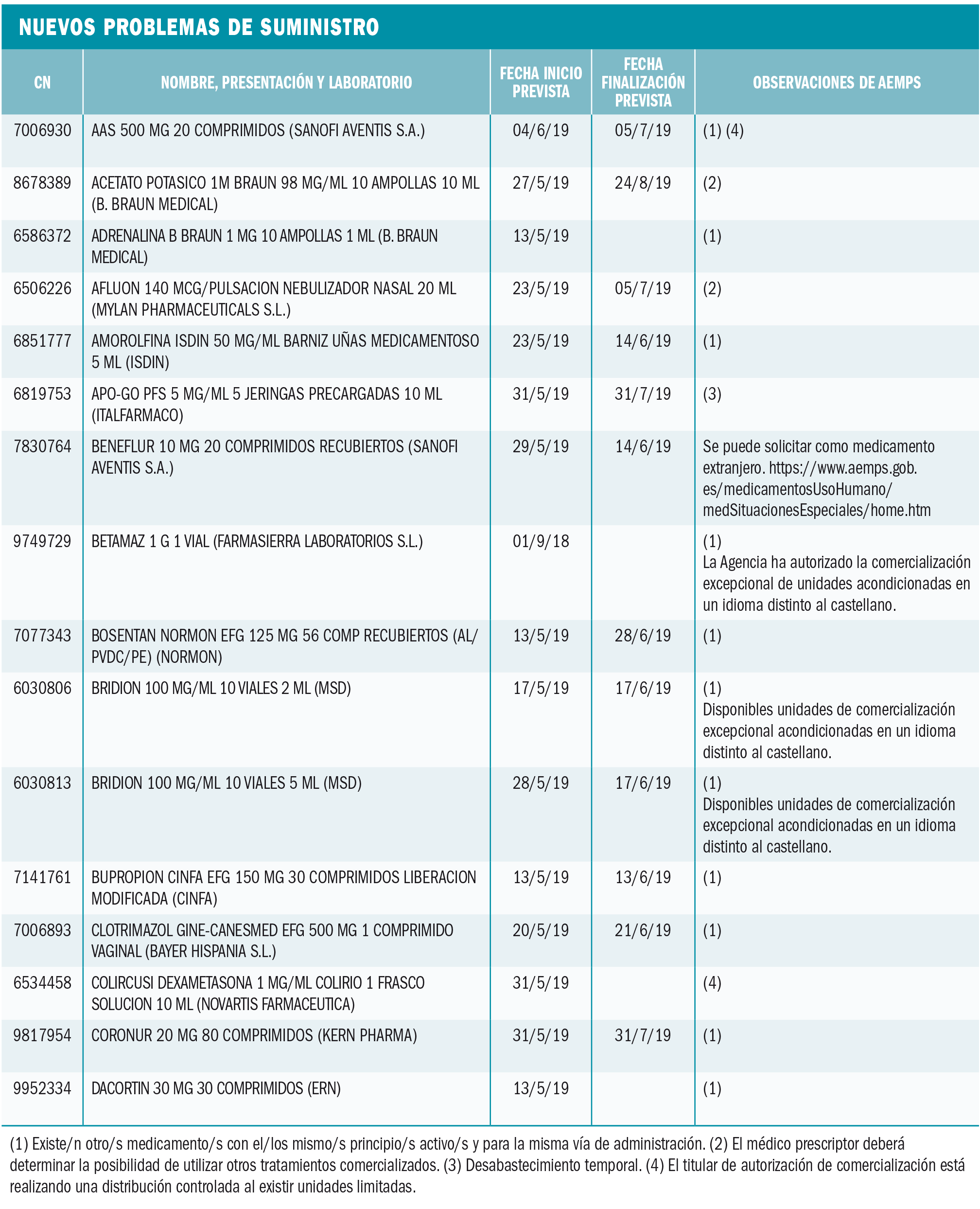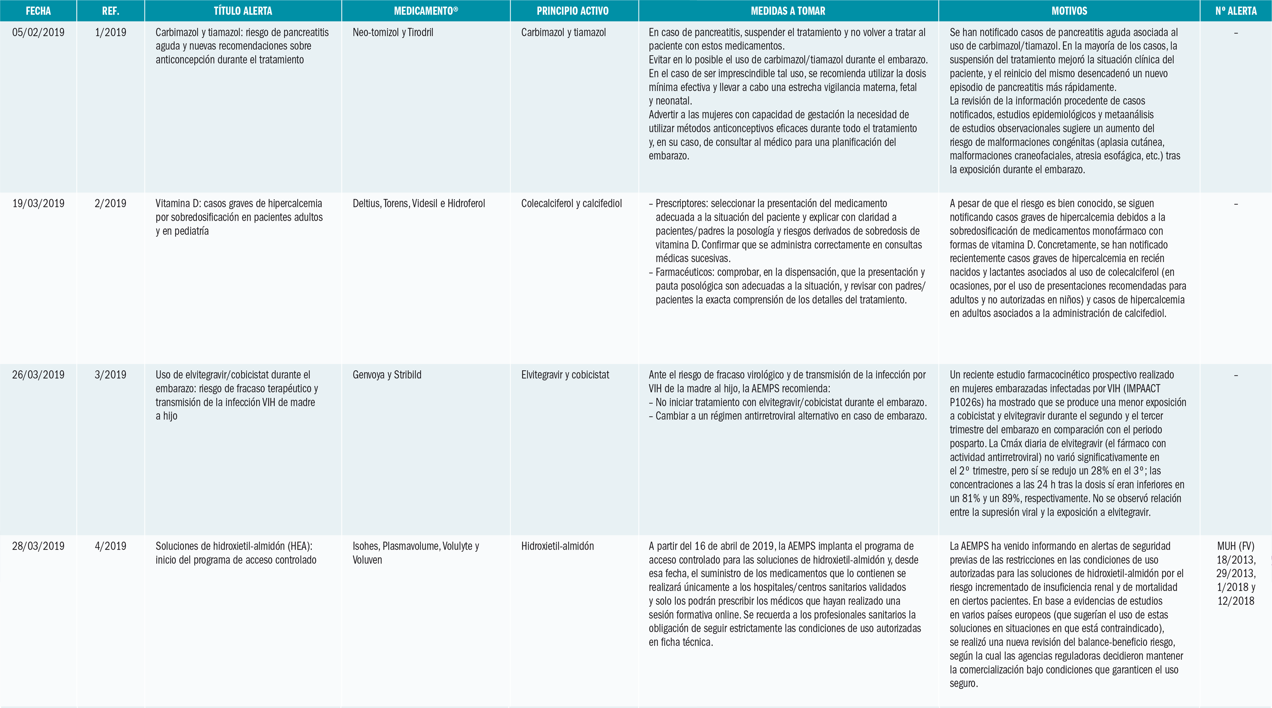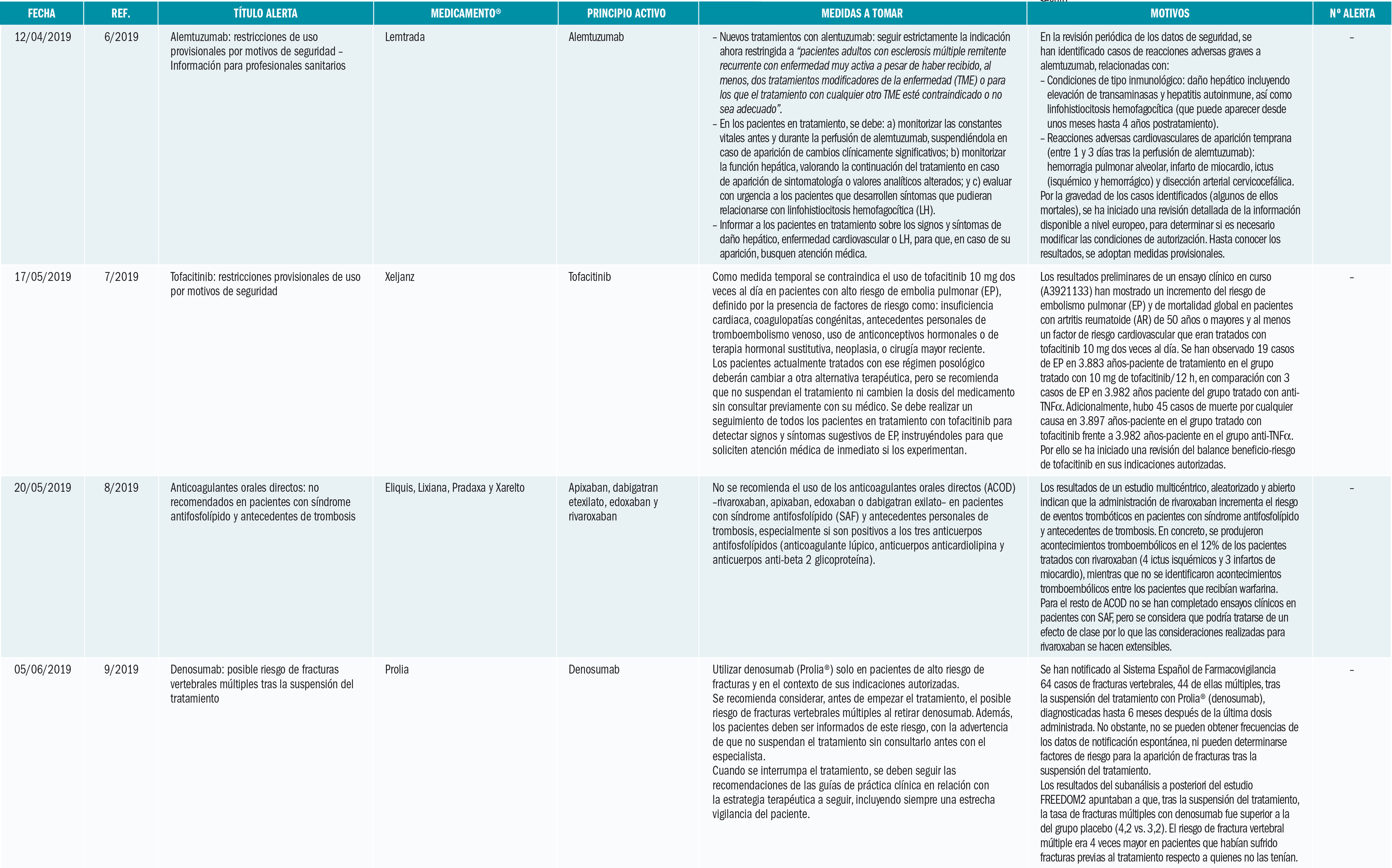 Alertas debidas a defectos de calidad observados en medicamentos de uso humano, publicadas por la AEMPS desde el anterior número y que suponen la retirada o inmovilización de ciertos lotes de medicamentos. En Bot PLUS puede encontrar más información detallada, con acceso al documento de la AEMPS