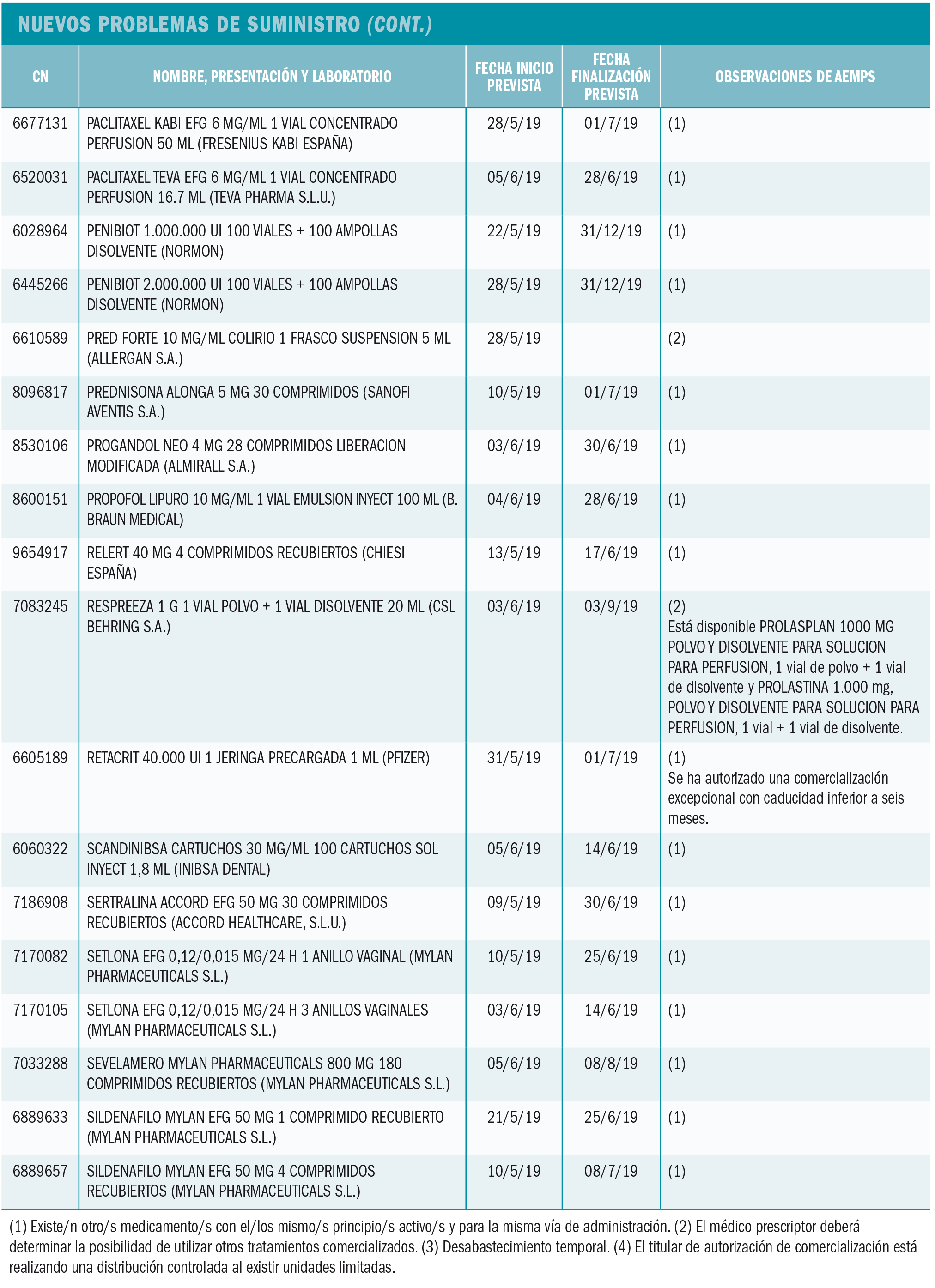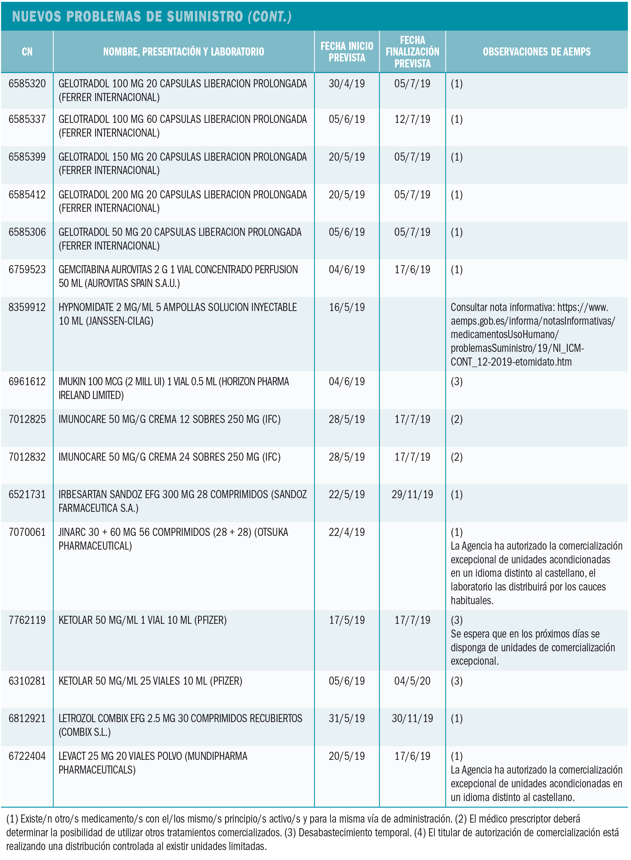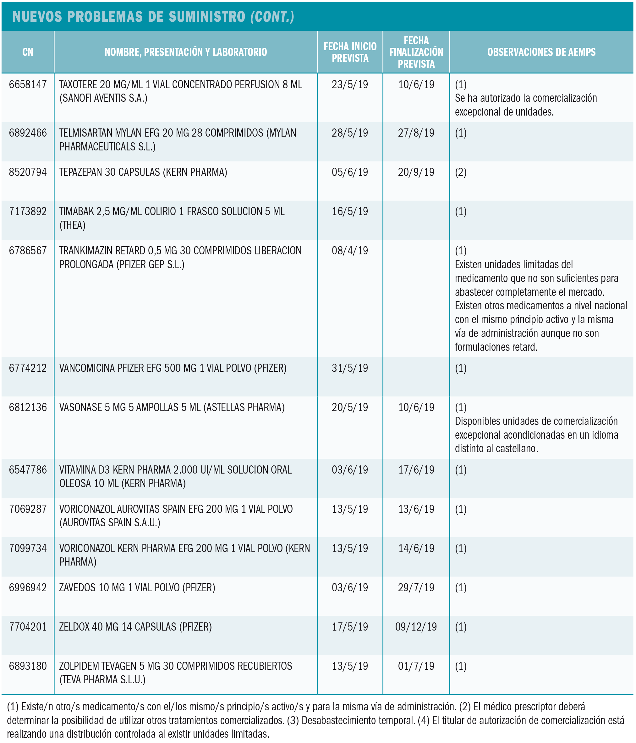 Alertas debidas a defectos de calidad observados en medicamentos de uso humano, publicadas por la AEMPS desde el anterior número y que suponen la retirada o inmovilización de ciertos lotes de medicamentos. En Bot PLUS puede encontrar más información detallada, con acceso al documento de la AEMPS