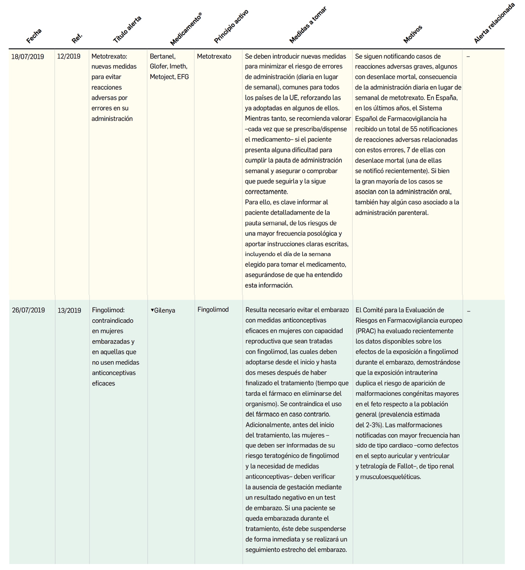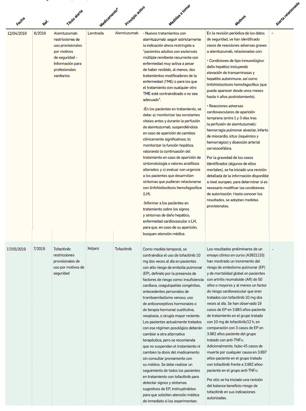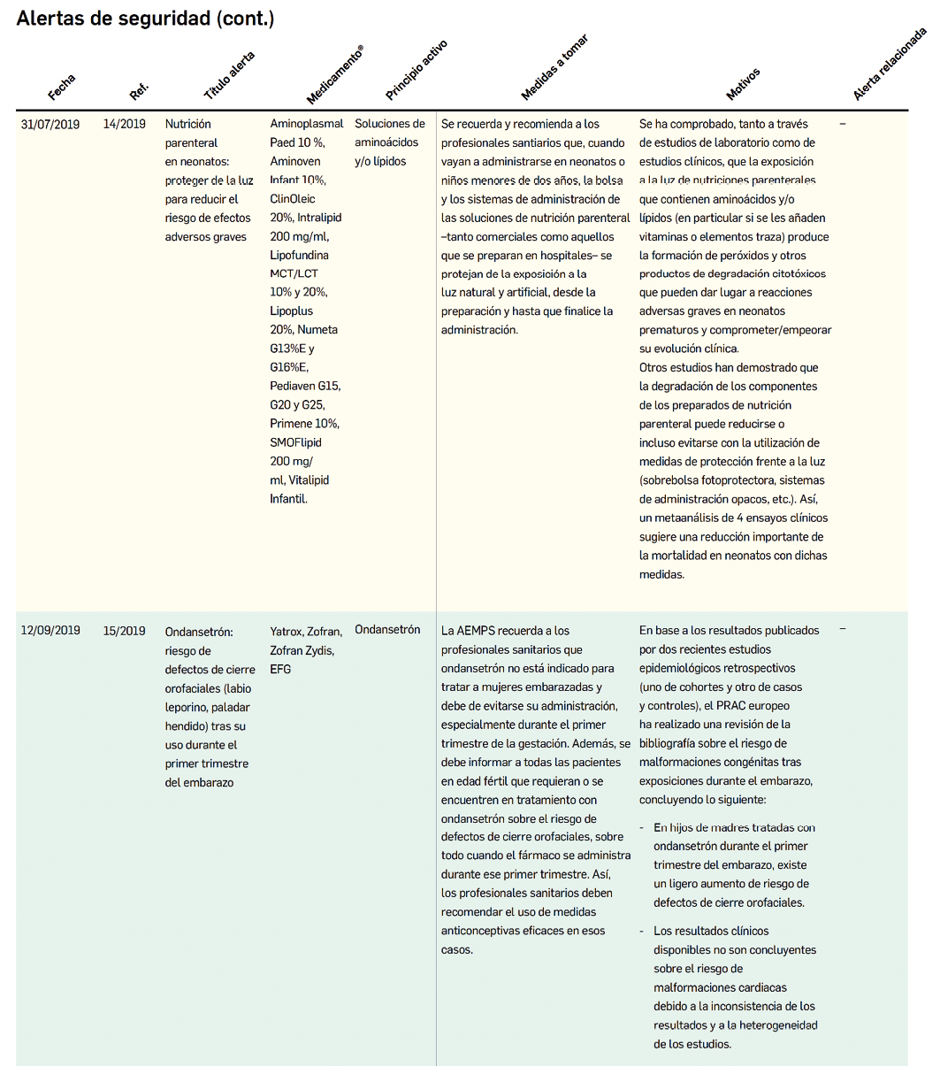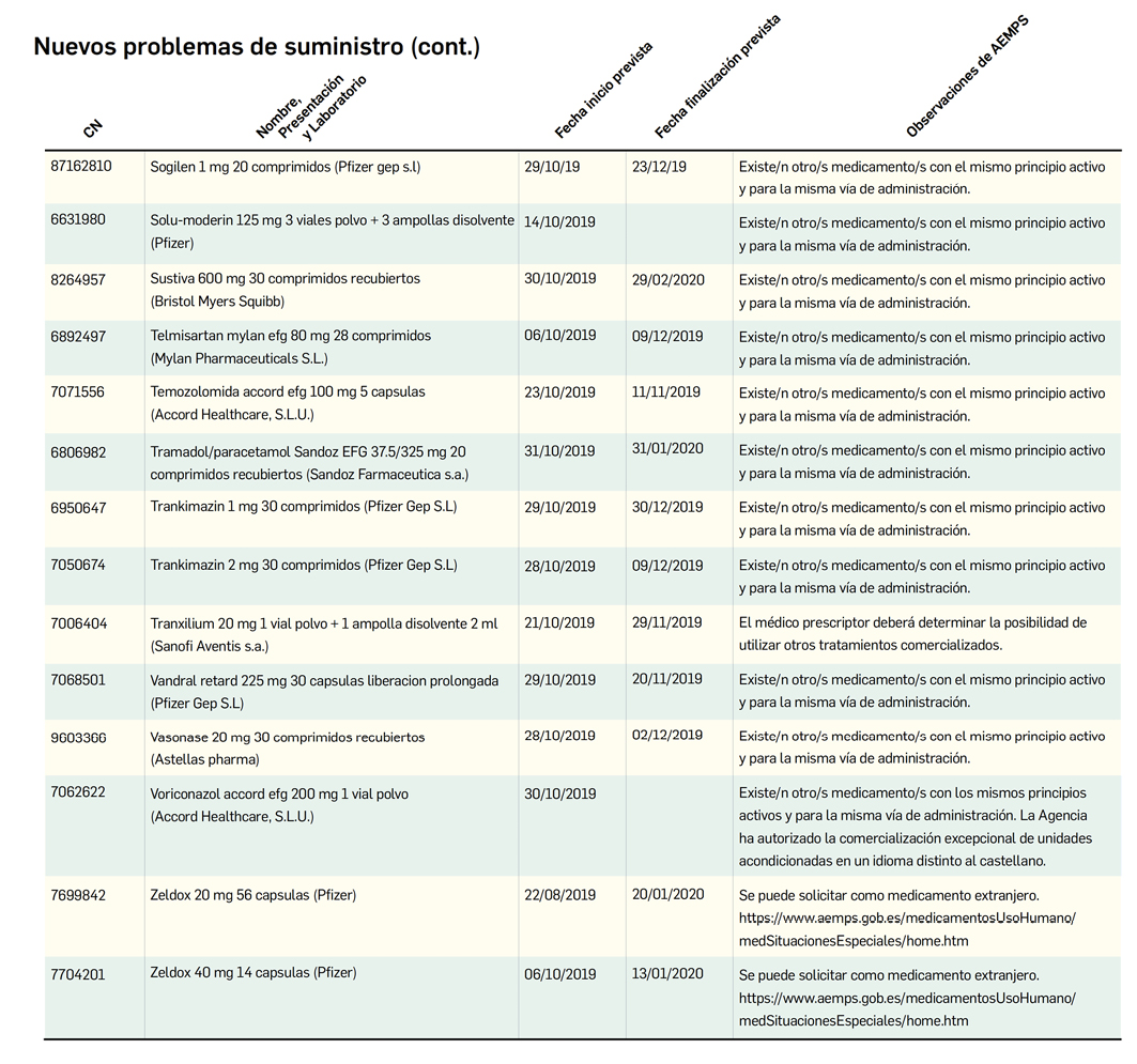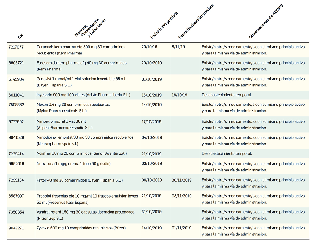 Alertas debidas a defectos de calidad observados en medicamentos de uso humano, publicadas por la AEMPS desde el anterior número y que suponen la retirada o inmovilización de ciertos lotes de medicamentos. En Bot PLUS puede encontrar más información detallada, con acceso al documento de la AEMPS