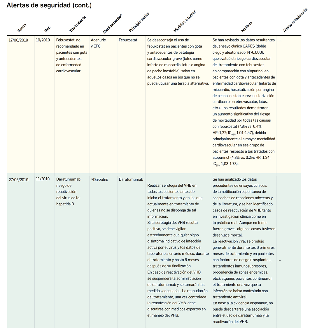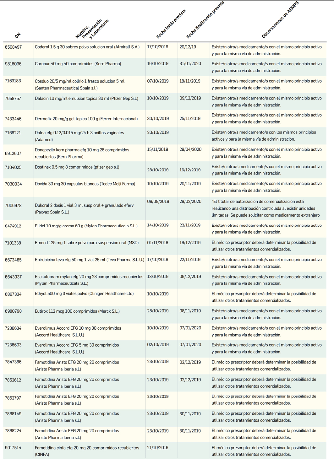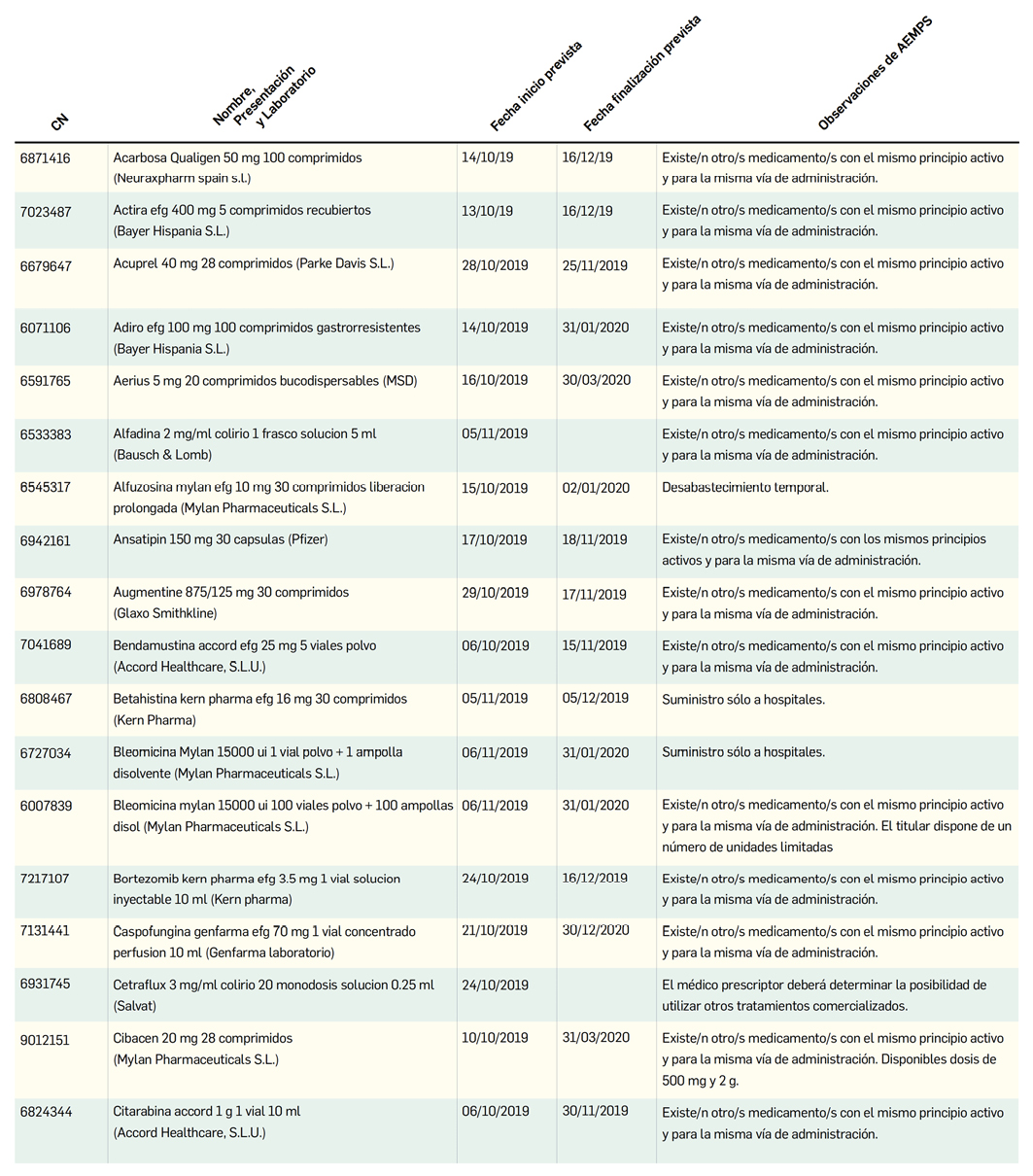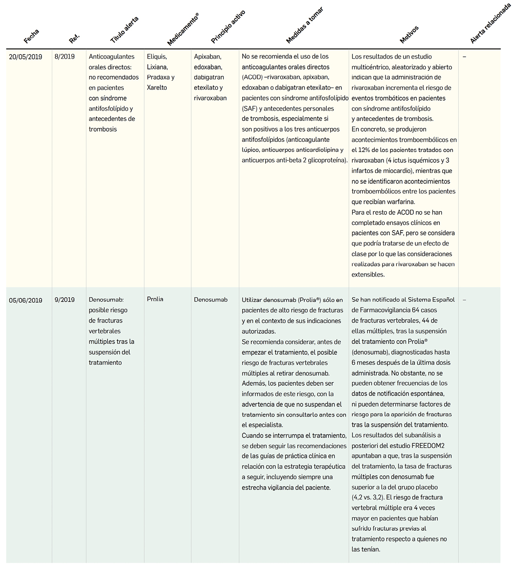 Alertas debidas a defectos de calidad observados en medicamentos de uso humano, publicadas por la AEMPS desde el anterior número y que suponen la retirada o inmovilización de ciertos lotes de medicamentos. En Bot PLUS puede encontrar más información detallada, con acceso al documento de la AEMPS