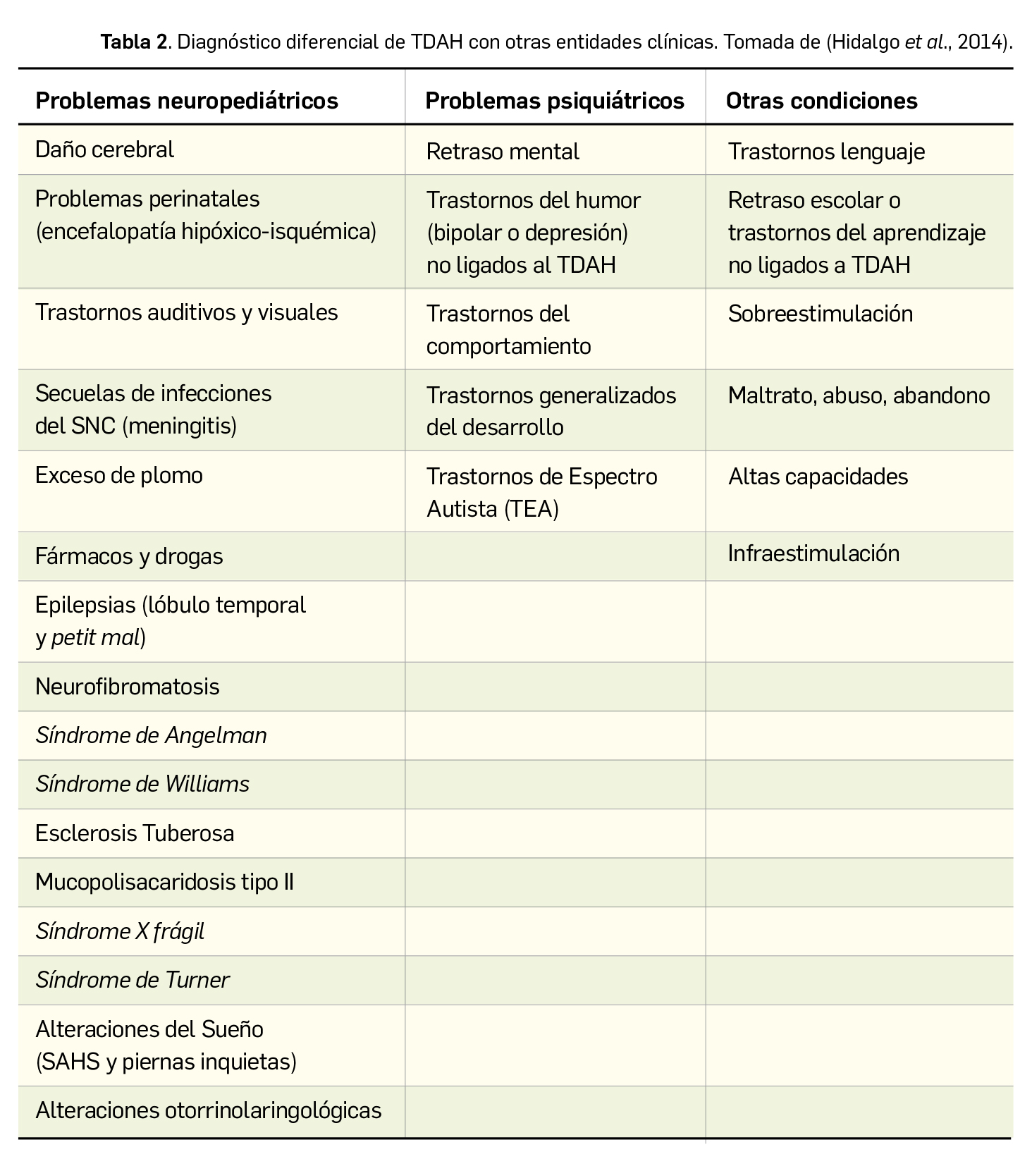En cuanto a su abordaje, no existe ninguna prueba gold-standard para el diagnóstico del TDAH, que debe basarse en una valoración clínica exhaustiva que incluya una anamnesis completa, exploración física y psicopatológica del paciente, y una evaluación de su entorno psicosocial. De hecho, el tratamiento, multimodal, se debe iniciar con modificaciones del entorno que disminuyan el impacto de los síntomas, reservando el uso de fármacos para cuando haya riesgo de deterioro en más de un ámbito de la vida del paciente. Para la intervención farmacológica, se dispone de fármacos estimulantes, como metilfenidato y lisdexanfetamina, y de fármacos no estimulantes, como atomoxetina y guanfacina. El presente artículo revisa en mayor profundidad todos los conceptos aquí resumidos.