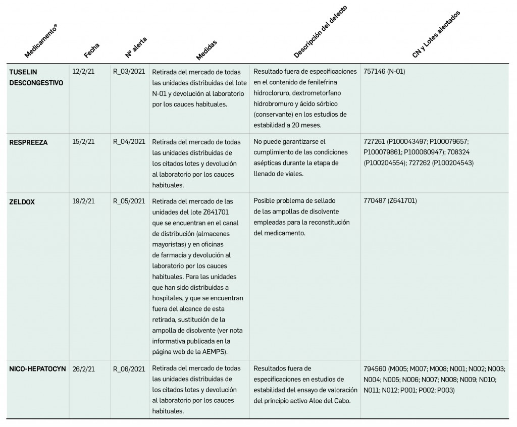 Además, se incluye una pestaña específica en la que se pueden consultar los lotes concretos que han sido retirados, con sus respectivas fechas de caducidad, así como la descripción del defecto de calidad detectado y las medidas a adoptar. También se cuenta con acceso al documento publicado por la AEMPS.