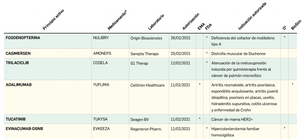 Pero no solo las novedades farmacoterapéuticas se limitan a la COVID-19. De hecho, lo que va de año 2021 está siendo un periodo muy prolífico desde el punto de vista de la innovación farmacológica, con la comercialización de hasta 11 principios activos nuevos solo en el primer trimestre. Entre ellos es destacable otro gran hito de la investigación en España, como ha sido la autorización de uso concedida en el mes de febrero por la AEMPS al hospital Clinic de Barcelona para la fabricación y administración del medicamento de terapia avanzada ARI-0001 en el tratamiento de la leucemia linfoblástica aguda en recaída o refractaria: se trata de la segunda autorización de este tipo concedida en nuestro país que profundiza en la evolución de los medicamentos CAR-T como un campo tremendamente prometedor de la medicina personalizada. De este medicamento se hablará detenidamente en el próximo número, pero por ahora se incluyen en éste la evaluación de otros tres principios activos antitumorales nuevos –apalutamida y darolutamida en cáncer de próstata y lorlatinib en cáncer de pulmón no microcítico– que, aunque comportan un menor grado de innovación, contribuyen a ampliar el arsenal terapéutico antineoplásico. Se siguen dando pequeños pasos en la progresión del abordaje del cáncer.