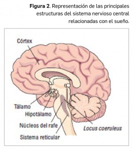 histaminérgica y colinérgica están aumentadas y disminuyen progresivamente durante la fase de sueño no REM. En cambio, durante el sueño REM las actividades noradrenérgica, histaminérgica y serotoninérgica se encuentran muy reducidas, mientras que el tono colinérgico se mantiene alto. Asimismo, las neuronas del área ventrolateral posterior del núcleo preóptico ejercen una acción inhibitoria mediada por el GABA y la galanina, ejerciendo como “activadoras del sueño”, y se proyectan a las regiones del hipotálamo posterior, como el núcleo tuberomamilar, activado por la histamina, el área perifornical, región responsable de la síntesis de hipocretinas u orexinas, y el tronco cerebral. Las hipocretinas son neuropéptidos de naturaleza excitatoria sintetizados por neuronas del hipotálamo lateral y posterior que presentan amplias proyecciones en el SNC (locus coeruleus, núcleos del rafe, área tegmental ventral, etc.) y actúan sobre receptores específicos –Hcrt-1 y Hcrt-2–; parecen cumplir un destacado papel en la etiopatogenia de ciertos trastornos del sueño, como la narcolepsia.
