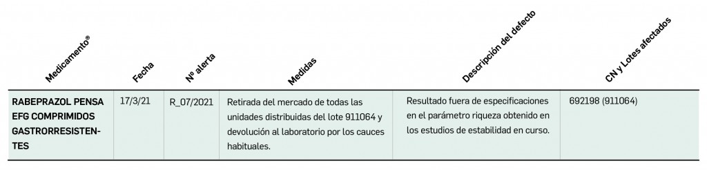 Además, se incluye una pestaña específica en la que se pueden consultar los lotes concretos que han sido retirados, con sus respectivas fechas de caducidad, así como la descripción del defecto de calidad detectado y las medidas a adoptar. También se cuenta con acceso al documento publicado por la AEMPS.