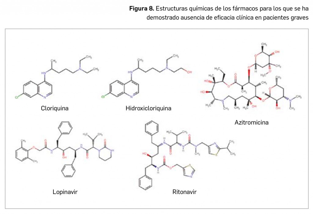 Dexametasona (Figura 7) es un glucocorticoide fluorado de uso común desde la década de 1960 para tratar una amplia gama de afecciones con componente inflamatorio y autoinmune –entre ellas, artritis reumatoide, asma o procesos alérgicos o neoplásicos–, por sus propiedades antiinflamatorias, inmunosupresoras y antialérgicas, y su casi nula actividad mineralocorticoide. Está disponible en España en numerosas presentaciones de medicamentos para diversas vías de administración, siendo su perfil de seguridad no desdeñable, pero bien conocido (caracterizado por frecuentes eventos adversos tales como: susceptibilidad aumentada a las infecciones, candidiasis orofaríngea, hiperglucemia, osteoporosis, cataratas, insuficiencia adrenocortical e inducción de síntomas parecidos al síndrome de Cushing, etc.). La indicación autorizada para su uso en “COVID-19 en pacientes de ≥ 12 años y ≥ 40 kg que requieran oxígeno suplementario” ha sido incluido en la ficha técnica de varios medicamentos. No se ha probado, sin embargo, su beneficio en aquellos pacientes con enfermedad leve-moderada (una mayoría).