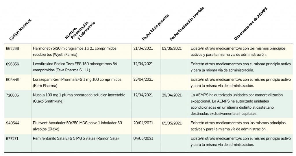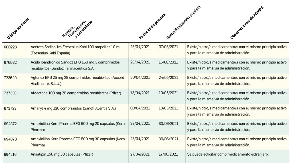 Fármacos relacionados registrados en España