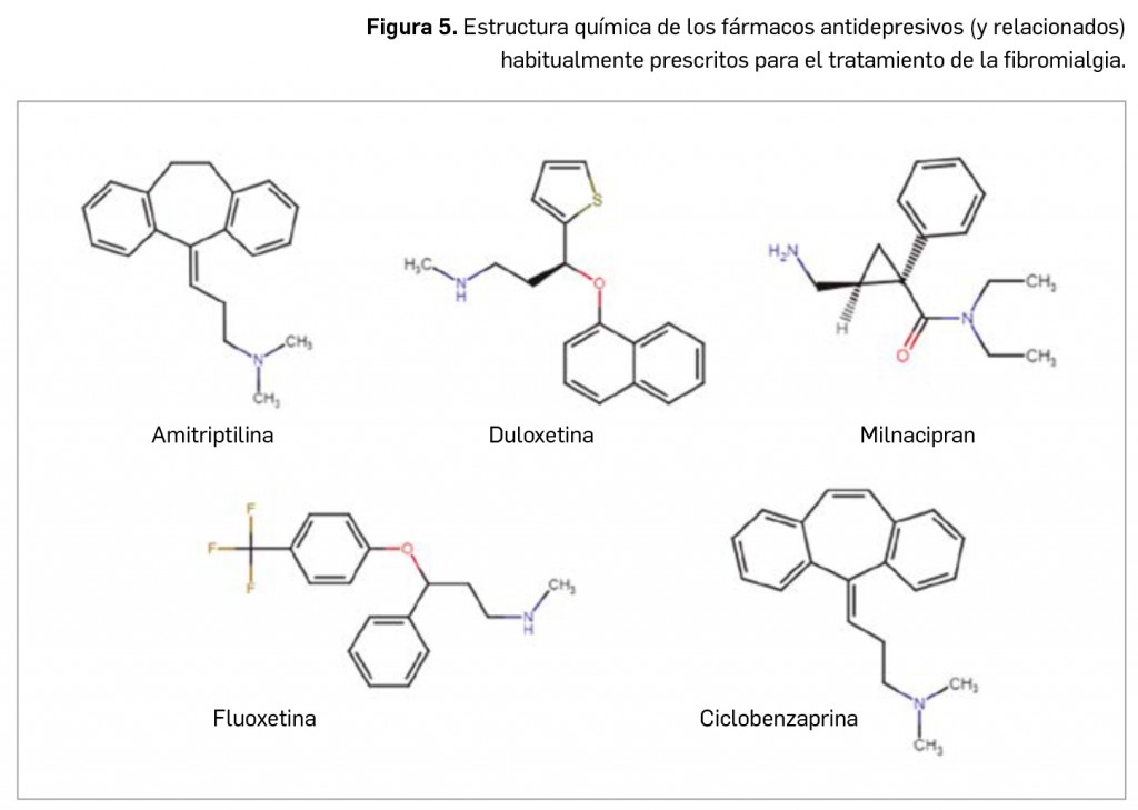De hecho, el primer fármaco que consiguió la aprobación por la FDA para la indicación en fibromialgia fue la pregabalina (Lyrica® y EFG), en 2007 (Figura 6). A pesar de su evidente relación estructural con el ácido gamma aminobutírico (GABA), el principal aminoácido neuroinhibitorio del SNC, su mecanismo farmacológico no parece tener nada que ver con ello y, de hecho, actúa uniéndose de forma selectiva y con una elevada afinidad a una subunidad auxiliar específica (proteína alfa-2-sigma) de los canales de Ca2+ dependientes de voltaje presentes en la membrana neuronal. Esto conduce a un bloqueo de dicho canal iónico, con la consiguiente reducción de la entrada de Ca2+ en la neurona; así, a pesar de que la membrana neuronal experimente un proceso de despolarización –por estímulo externo procedente de otras neuronas–, no habrá un incremento de las concentraciones intraneuronales de calcio. En consecuencia, se reduce la liberación neuronal de neurotransmisores, en mayor medida si la neurona ha sido estimulada anteriormente. El resultado es un bloqueo o amortiguación de la dispersión de la señal excitatoria neuronal, tanto en lo que se refiere a la descarga epileptógena, como en la señal dolorosa de origen neuropático.