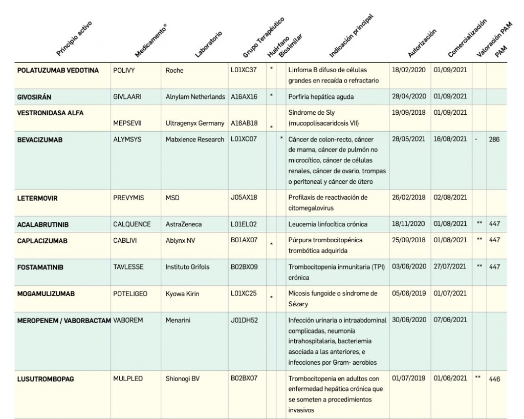 Fármacos relacionados registrados en España