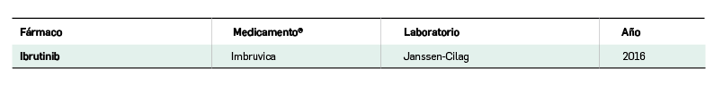 El ibrutinib actúa inhibiendo de forma irreversible y selectiva a la tirosina cinasa de Bruton (BTK), un miembro de la familia de las tirosina cinasas Tec que participa en la señalización bioquímica del receptor de antígenos (BCR) y del receptor de citocinas de los linfocitos B, implicados en la patogenia de diversas neoplasias de linfocitos B; dicha inhibición impide la adhesión y migración dependientes de integrinas de los linfocitos B. Fue inicialmente autorizado, como medicamento huérfano, para el tratamiento por vía oral de pacientes adultos con LLC que han recibido al menos un tratamiento previo, o en primera línea en presencia de deleción del 17p o mutación de TP53 en pacientes en los que la inmunoquimioterapia no se considera apropiada. El tratamiento se asocia con altas tasas de respuesta a largo plazo en pacientes con LLC recidivante/refractaria y linfoma de células del manto, incluidos pacientes con lesiones genéticas de alto riesgo. Esto, unido a la facilidad de posología hace que ibrutinib sea hoy en día un tratamiento ampliamente utilizado para pacientes con LLC tanto en primera línea como en recaída o refractariedad.