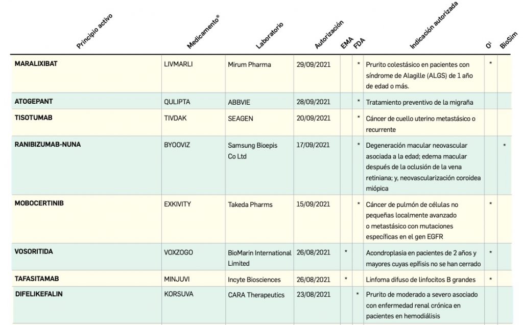 Medicamentos de uso humano autorizados en la Unión Europea (EMA) y Estado Unidos (FDA) durante los últimos 12 meses, con principios activos o biosimilares que aún no están comercializados en España.