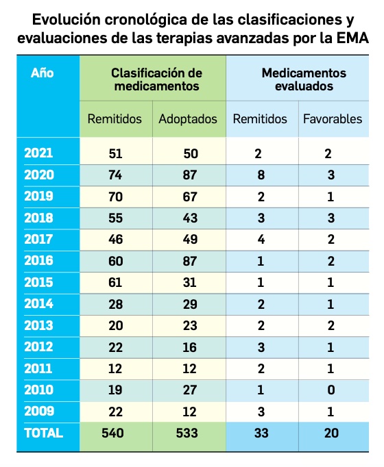 Los medicamentos de terapia avanzada (MTA o Advanced Therapy Medicinal Products, ATMP) ofrecen nuevos e innovadores tratamientos para las enfermedades. Están basados en la terapia génica, la terapia celular somática o la ingeniería tisular. El marco legal para las ATMP en la Unión Europea está establecido en la Regulation (EC) No 1394/2007 on advanced therapy medicinal products que asegura el libre movimiento de estas medicinas dentro de la Unión Europea y el acceso a los mercados. La regulación (EC) nº 1394/2007 también establece el nuevo Comité en Terapias avanzadas (CAT) cuya responsabilidad fundamental consiste en preparar un proyecto de opinión sobre cada nueva solicitud de medicamento de terapia avanzada planteada a la Agencia Europea de Medicamentos, antes de que el Comité de Medicamentos de Uso Humano (CHMP, Committee for Medicinal Products for Human Use) de la misma adopte una opinión definitiva sobre la concesión, modificación, suspensión o revocación de una autorización de comercialización para el medicamento en cuestión.