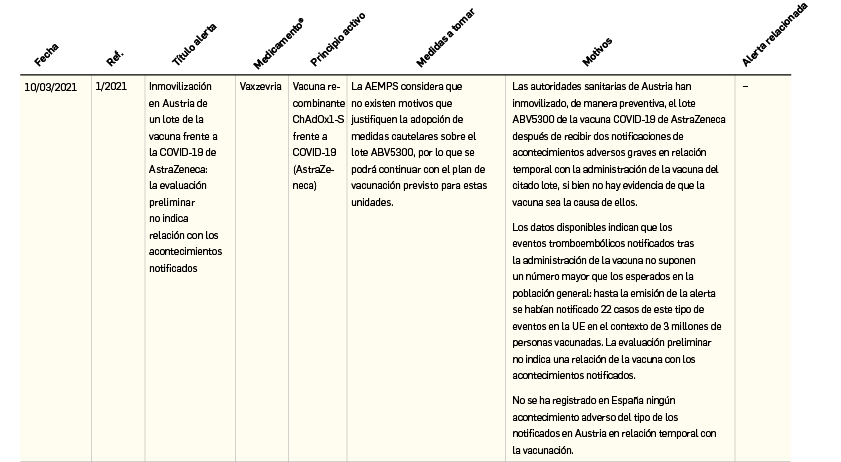 Resumen de las notas sobre seguridad y farmacovigilancia publicadas por la AEMPS desde principios del año 2021. Para información más ampliada y acceso al documento de la AEMPS, puede consultar BOT PLUS.