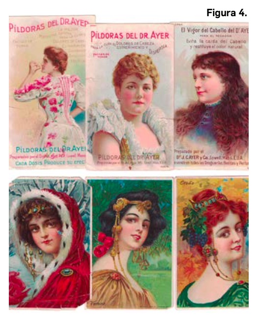 Para idénticas o muy parecidas funciones que las dos anteriores eran las píldoras del Dr. Ayer (Figura 4). También relacionaban el buen funcionamiento intestinal con la belleza, el bienestar y el vigor, con lo cual eran laxantes. Las fabricaba el mencionado doctor en J.C. Ayer y Ca., Lowell, Massachusetts., EUA5 , quien también comercializaba, entre otros, un preparado para aumentar el vigor del cabello, evitar la caspa y curar las erupciones del cráneo.