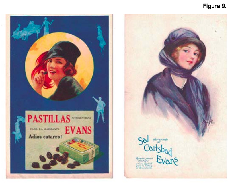 No tengo certeza sobre si esa compañía fabricó también la sal efervescente de Carlsbad Evans, empleada para las enfermedades hepáticas, la gota y el reumatismo. Relacionada por su nombre con la ciudad balneario de Karolvy Vary o Carlsbad, relativamente cercana a Praga y poblada de turistas rusos, del resto de Europa y del mundo. Se publicitaba en tarjetas postales impresas en Londres (Figura 9), en la empresa de Raphael Tuck & Sons, de tamaño idéntico a la anterior sobre un dibujo de 1914, lo cual puede ser indicativo de la pertenencia a la misma compañía y, desde luego, del modelo inglés de la misma.
