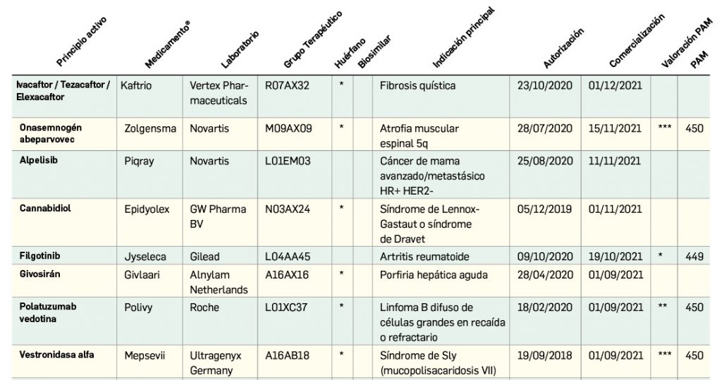 Las principales características fármaco-clínicas de todos los nuevos principios activos de 2021 se resumen en el presente artículo.