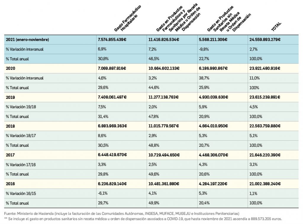 Por otro lado, resulta reseñable que en el año 2021 se han comercializado en España 6 nuevos medicamentos biosimilares: dos del principio activo bevacizumab, uno de adalimumab, uno de trastuzumab, uno de pegfilgrastim y uno de teriparatida.