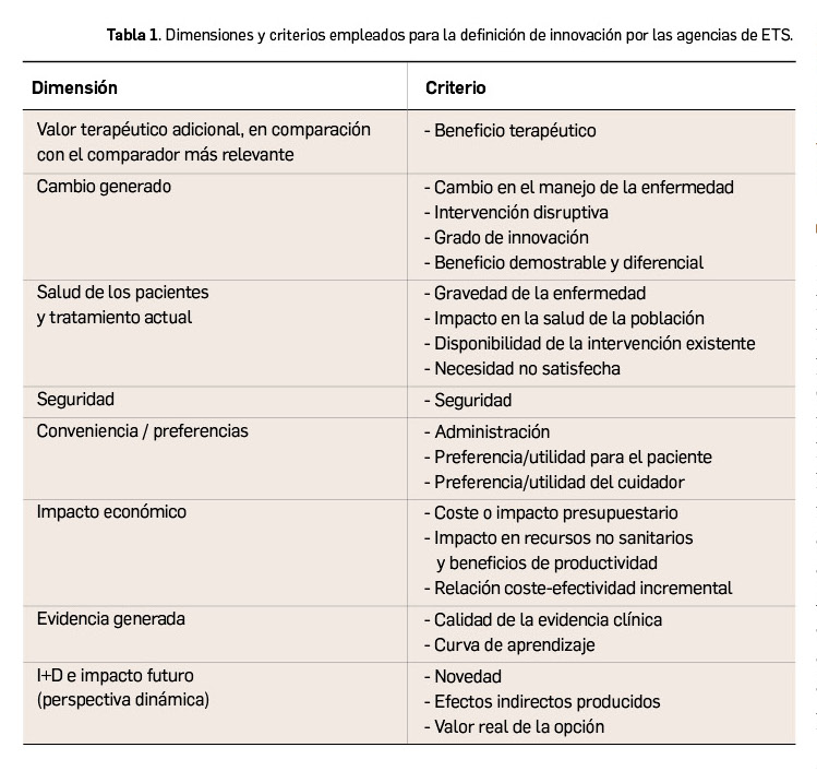 El artículo revisado abre el debate sobre la necesidad de establecer no solo los criterios, sino también una definición explícita sobre el concepto de innovación, que se pueda aplicar de forma rigurosa en las diferentes agencias de ETS de los países, con el fin de ayudar a la toma de decisiones sobre las tecnologías sanitarias.