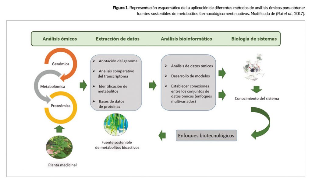 En este contexto, los enfoques basados en las tecnologías ómicas, fundamentalmente la genómica, la transcriptómica, la proteómica y la metabolómica, junto con las herramientas bioinformáticas disponibles para su análisis e interpretación, han supuesto un importante avance en la caracterización funcional de los genes responsables de la formación de compuestos activos y en la comprensión de los mecanismos de respuesta de los sistemas vegetales. Son fundamentales para el desarrollo de modelos metabólicos y, a su vez, ayudan a diseñar estrategias para generar sistemas bacterianos o vegetales que produzcan compuestos de interés, ampliando la investigación sobre metabolitos secundarios de plantas medicinales y, por tanto, su empleo en terapéutica.