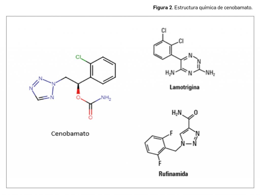 Cenobamato es un nuevo agente antiepiléptico con un mecanismo de acción dual: por un lado, actúa como modulador alostérico positivo del receptor del canal iónico del GABA (GABAA) mediante su unión a un lugar diferente al de las benzodiazepinas, y por otro, bloquea los canales de Na+, de forma que potencia la inactivación de estos canales e inhibe el componente persistente de la corriente de Na+, reduciendo la descarga neuronal repetitiva. Aunque no se conoce el mecanismo exacto que lo media, el fármaco se ha revelado eficaz en el control de las crisis epilépticas de inicio focal, de modo que el medicamento ha sido autorizado para el tratamiento concomitante por vía oral de las crisis de inicio focal con o sin generalización secundaria en adultos con epilepsia que no han sido controlados de forma adecuada a pesar del tratamiento previo con al menos 2 antiepilépticos.