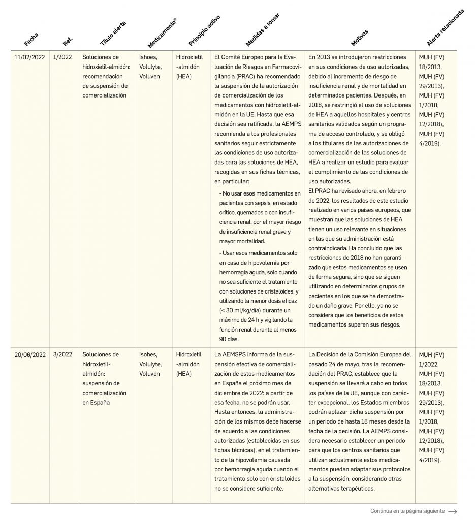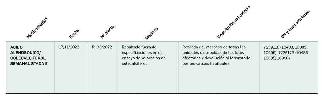 Listado de medicamentos con problemas de suministro publicado por la AEMPS, a fecha de cierre de este número. En BOT PLUS se puede encontrar la información completamente actualizada, al tratarse de una información que varía de forma continua.