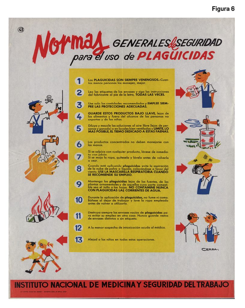 El mencionado Instituto, el año 1965, firmado igualmente por CERRA, editó otro pasquín de gran tamaño (50×70 cm) en donde se dan normas para el uso de los plaguicidas que, supongo, serán muy del gusto de los actuales ecologistas (Figura 6).