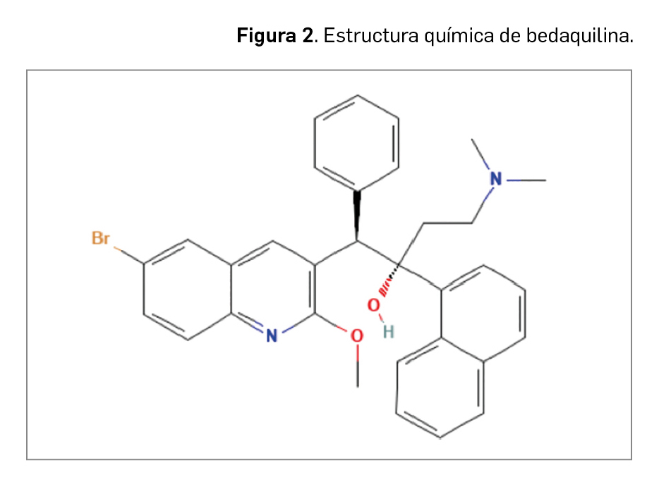 Bedaquilina es un nuevo antibiótico oral activo frente a la infección por M. tuberculosis multirresistente. Su mecanismo de acción consiste en la inhibición específica de la ATP sintasa micobacteriana, esencial en la producción de energía para el microorganismo, lo que produce un efecto bactericida tanto en las bacterias en reproducción como en las bacterias en reposo (fase latente). Se encuentra actualmente autorizado y está comercializado como medicamento huérfano, estando indicado en pacientes adultos y pediátricos (desde 5 años hasta menos de 18 años y un peso de al menos 15 kg) para ser utilizado como parte de un adecuado tratamiento combinado de la tuberculosis pulmonar multirresistente (MDR-TB) cuando un régimen de tratamiento efectivo no puede instaurarse por motivos de resistencia o tolerabilidad.