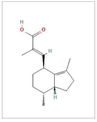Los ácidos valerénico (Figura 2), acetoxivalerénico e hidroxivalerénico son ácidos carboxílicos sesquiterpénicos menos volátiles presentes también en el aceite esencial. Los ácidos isovalérico e hidroxiisovalérico se liberan en los procesos de secado y almacenado de la planta, lo que confiere a la valeriana su olor característico (un aroma desagradable) que no se observa en la planta fresca.