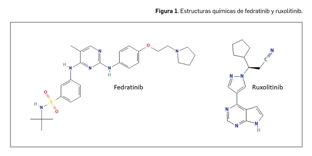 Fedratinib es un nuevo inhibidor de la proteína JAK2 y de la tirosina cinasa 3 similar a FMS (FLT3), de tipo natural y mutada. FLT3 es una proteína con actividad tirosina cinasa relacionada con la diferenciación, proliferación y supervivencia de las células progenitoras hematopoyéticas. Las mutaciones que conducen a su actividad constitutiva promueven la proliferación celular y la resistencia a la apoptosis. Su actividad inhibidora sobre JAK2 permite reducir la fosforilación y la consiguiente activación de las proteínas activadoras de la transcripción STAT3/5. En base a estas acciones, fedratinib ha sido autorizado y comercializado en un medicamento designado como huérfano, con indicación en el tratamiento de la esplenomegalia o los síntomas relacionados con la enfermedad en pacientes adultos con mielofibrosis primaria, mielofibrosis posterior a policitemia vera o mielofibrosis posterior a trombocitemia esencial que no han recibido inhibidores de la cinasa asociada a Janus (JAK) previamente o han recibido tratamiento con ruxolitinib.