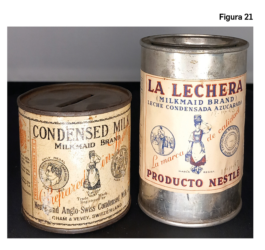 Por último, me queda presentar los botes de leche condensada La Lechera que tenemos en nuestra colección (Figura 21), de cuya historia también me ocupé en el artículo inmediatamente anterior.