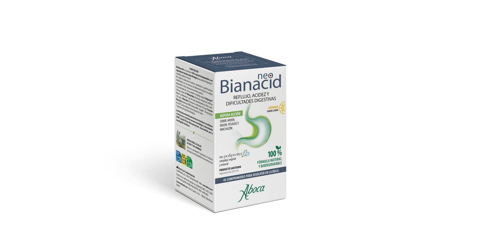 NeoBianacid, de Aboca, es una línea de productos sanitarios de rápida acción para el tratamiento del reflujo gastroesofágico, el dolor de estómago y las dificultades digestivas. También puede serlo como prevención en situaciones que provocan irritación de la mucosa.