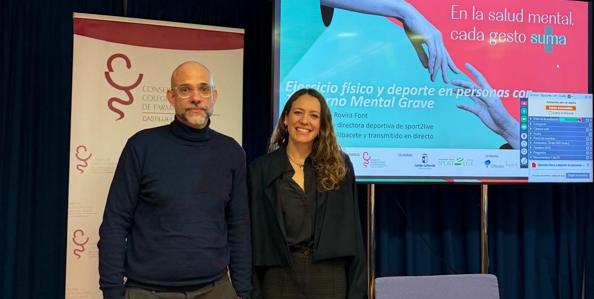 La sesión contó con la participación de María Rovira Font, vicepresidenta y directora deportiva de Sport2Live, quien impartió la ponencia titulada “Ejercicio físico y deporte en personas con trastorno mental grave (TMG)”. El acto fue inaugurado por el presidente del Colegio, Pablo Silvestre. Durante su intervención, Rovira Font explicó las características del ejercicio físico adecuado para este colectivo y destacó sus beneficios como herramienta terapéutica dentro de un abordaje integral.