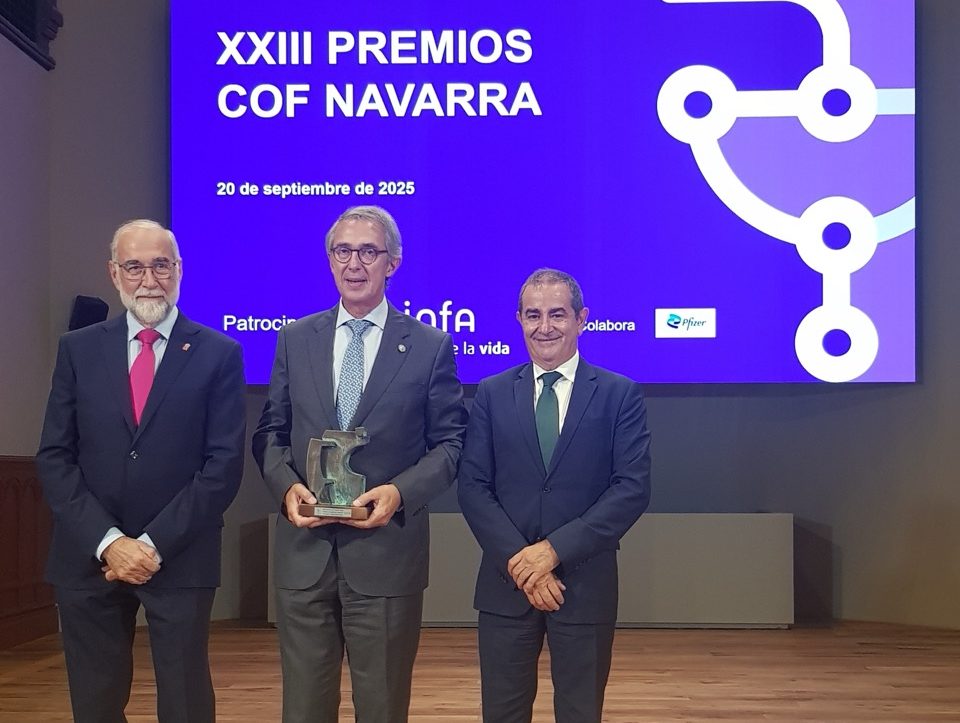 El Colegio Oficial de Farmacéuticos de Navarra (COFNA) ha otorgado a Enrique Ordieres el XXIII Premio COF Navarra en reconocimiento a su destacada trayectoria profesional en una ceremonia celebrada el pasado 20 de septiembre.