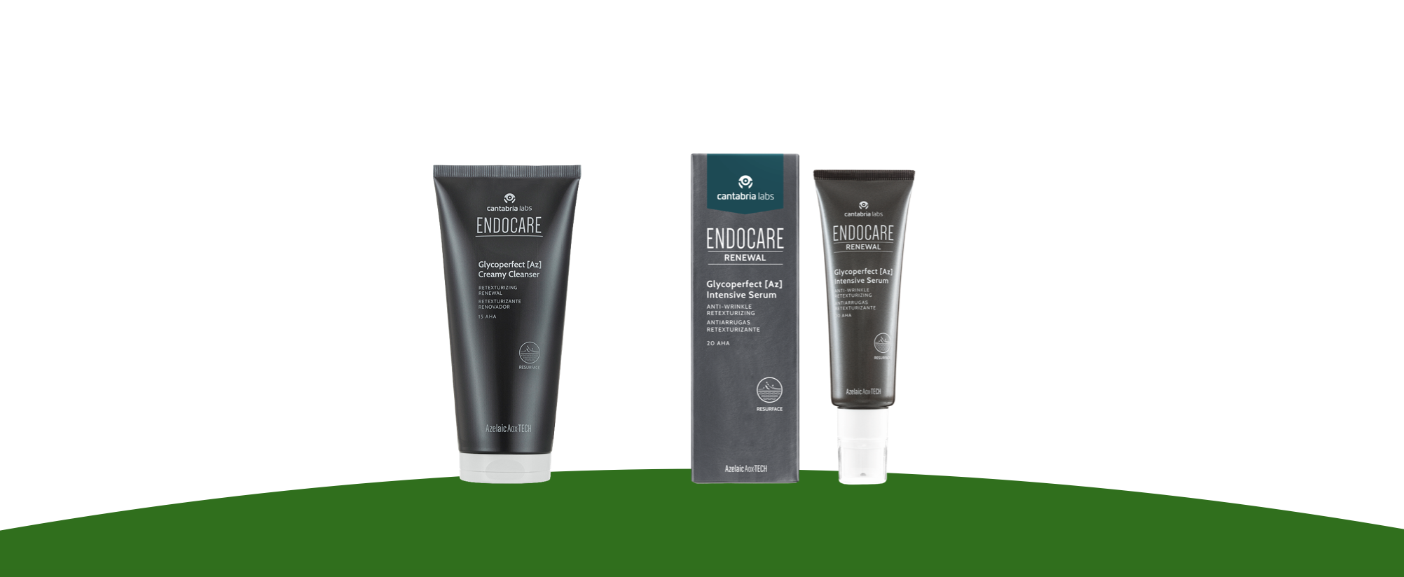 - Endocare Renewal Glycoperfect [Az] Intensive Serum (50 ml): tratamiento intensivo antienvejecimiento formulado con una potente combinación de 20 % de AHA’s. Principalmente, contiene ácido glicólico, lo que le otorga una capacidad renovadora y exfoliante y mejora la textura de la piel, reduce arrugas y líneas de expresión y ayuda a recuperar la luminosidad de la piel.