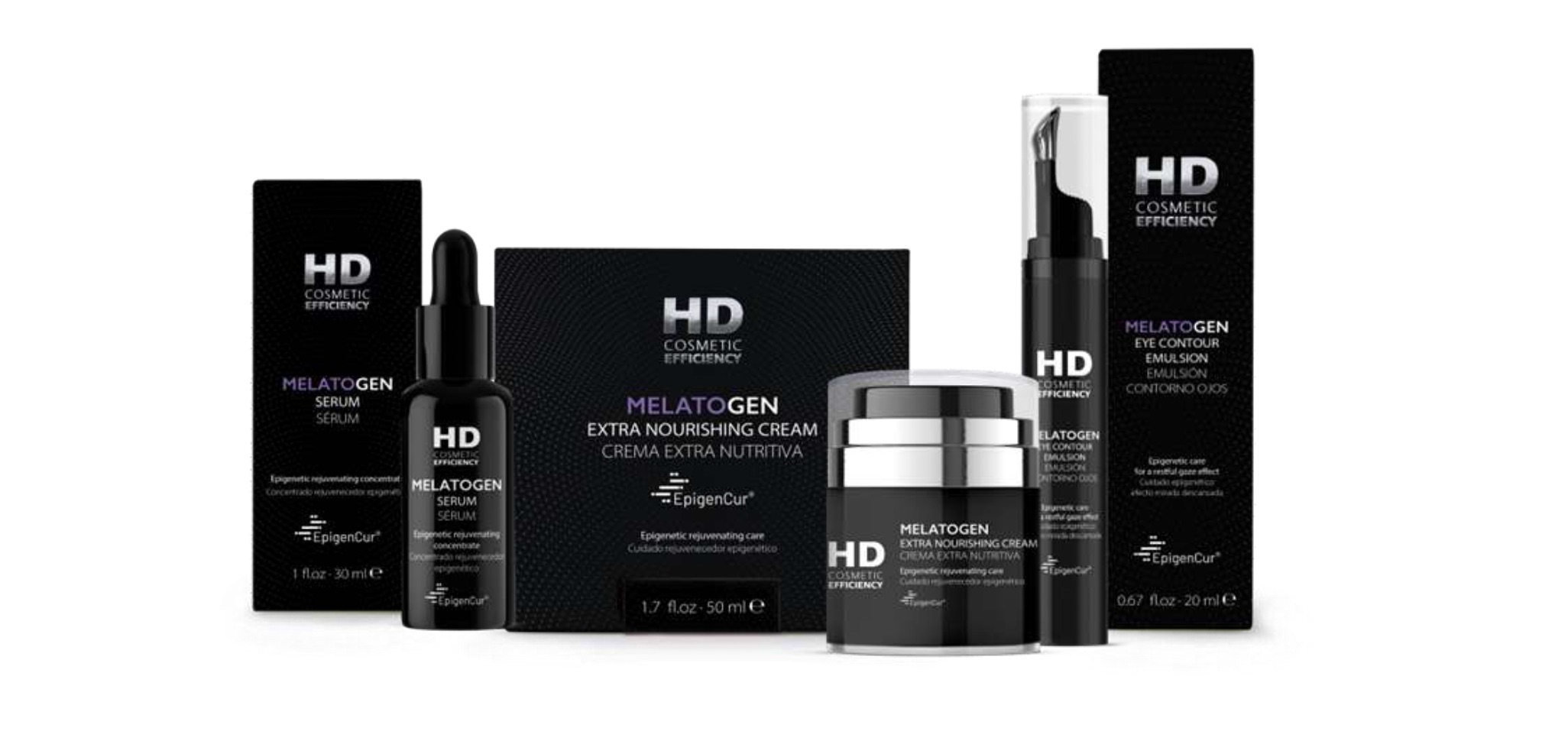 HD Cosmetic Efficiency incorpora la epigenética a la formulación cosmética mediante el desarrollo de EpigenCur, un complejo de activos orientado a modular la expresión génica sin alterar la secuencia del ADN. Esta tecnología se integra en la línea Melatogen que combina activos epigenéticos con melatonina en un mismo tratamiento.