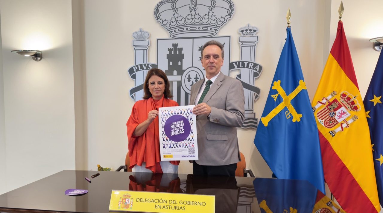 El presidente del Colegio de Farmacéuticos de Asturias, Alfredo Menéndez y la delegada del Gobierno en Asturias, Adriana Lastra, firmaron el pasado 7 de octubre en Oviedo el protocolo de colaboración para que las 454 farmacias que hay en Asturias puedan ser Puntos Violeta.