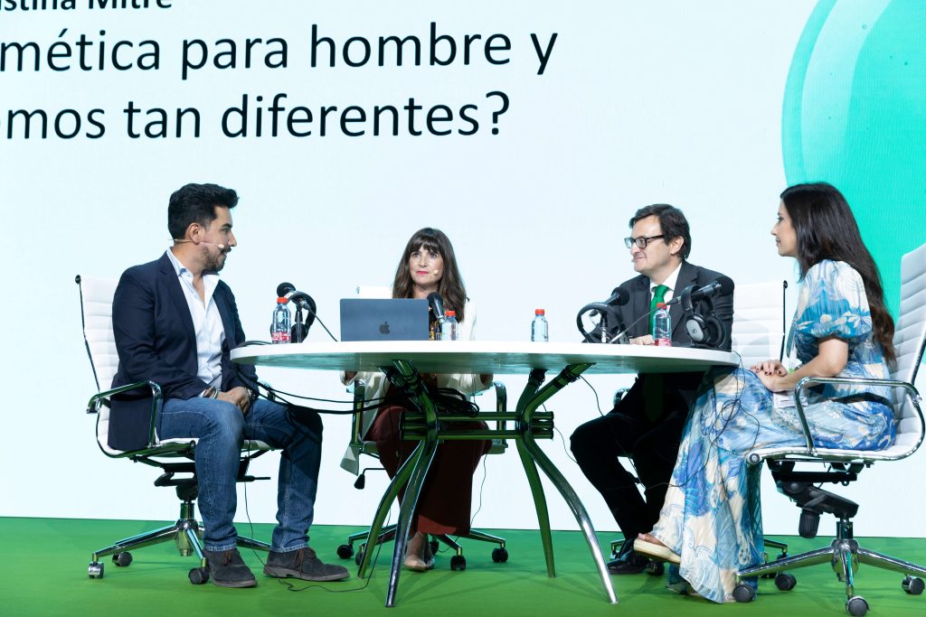 El encuentro acogió la grabación en directo de un episodio del podcast de la periodista de belleza y salud, Cristina Mitre, en el que los participantes debatieron en torno a si realmente existen diferencias significativas sobre el cuidado y el tratamiento de la piel del hombre y la mujer. Durante el mismo se conocieron los puntos de vista del vocal nacional de Dermofarmacia, Tomás Muret; la médico especialista en dermatología clínica, estética y tratamientos láser, Natalia Jiménez Gómez y Jorge Mercado García, médico cirujano experto en medicina estética.