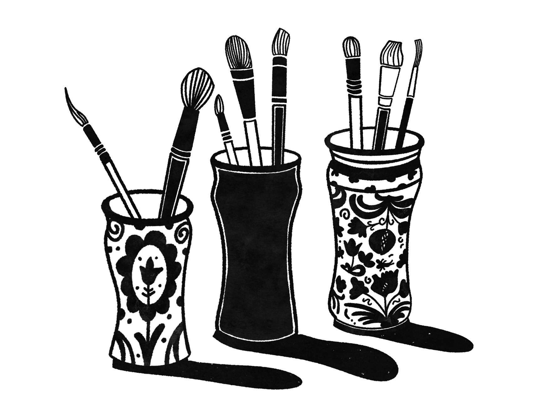 Sorolla va recogiendo en sus viajes las artesanías propias de los lugares, entre los que destacan las piezas de cerámica. Buscando tanto la decoración como su utilización práctica. Así que acostumbra a guardar sus pinceles en botes de farmacia.