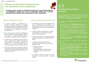 - La Agencia Española de Medicamentos y Productos Sanitarios (AEMPS) ha advertido recientemente del riesgo de sobredosis accidental de paracetamol en niños, especialmente con el uso de soluciones orales pediátricas, comúnmente llamados jarabes.